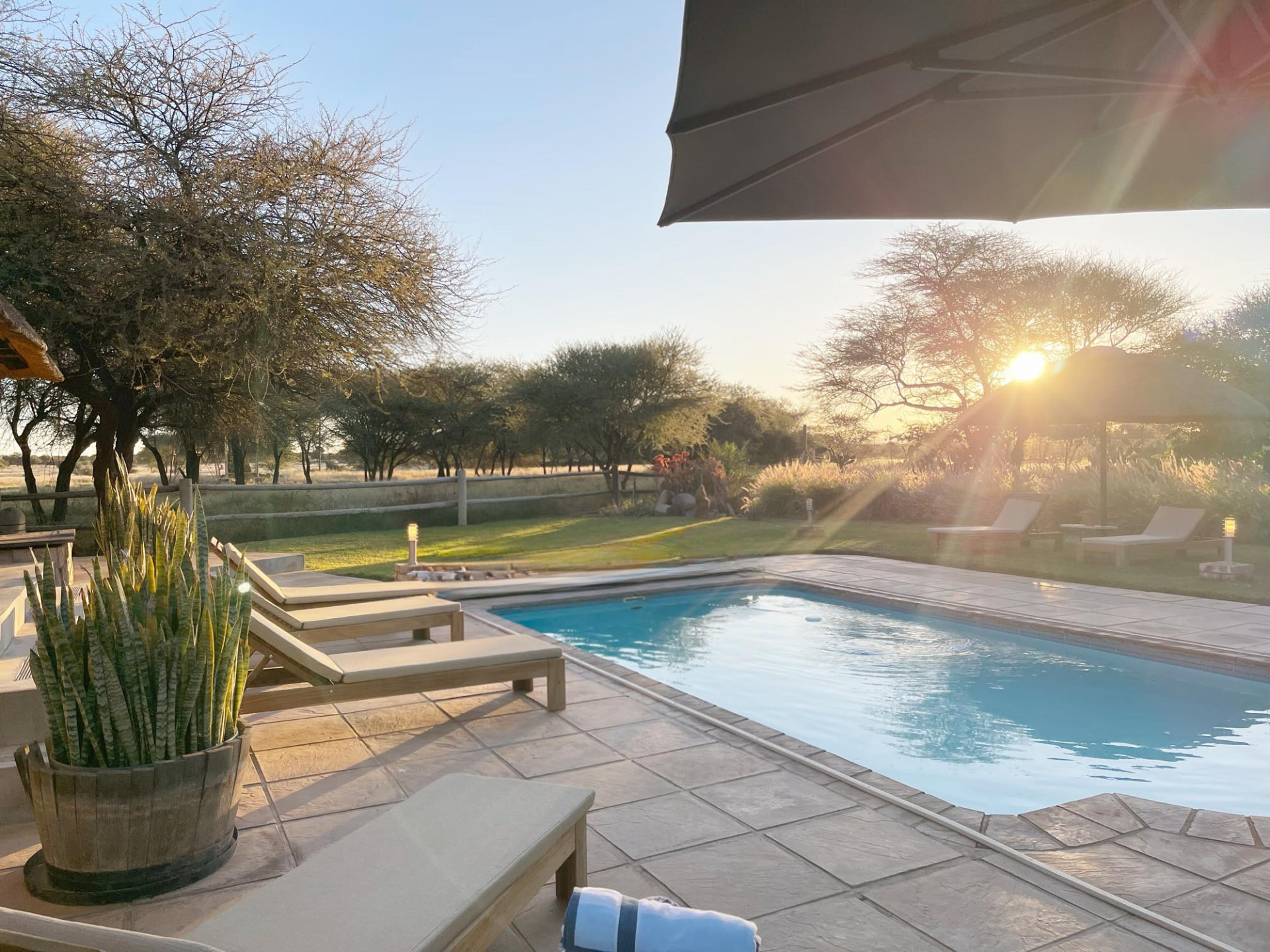 At Avenir, we take pride in offering spacious air conditioned suites, free Wi Fi throughout the lodge and rooms, open air dining, and a serene waterhole for wildlife viewing. Personalized service from our local team and German speaking hosts ensures every stay feels warm, relaxed, and personal.